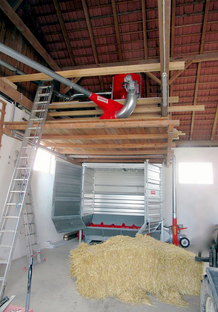 Depois a palha é transferida para o sistema de ar onde um despoeirador retira grande parte do pó (80%).