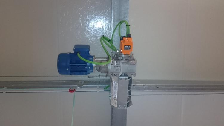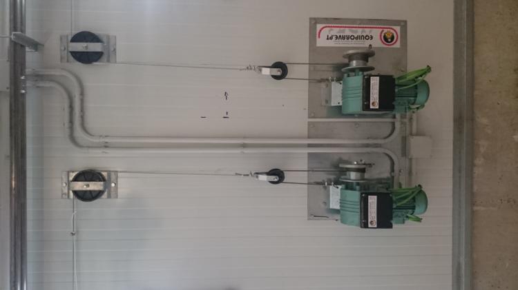 O distribuidor no pavilhão tem um raio de 8 mts e uma capacidade de 700 kg/h