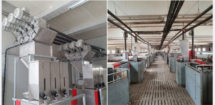 Alimentação multifase de dosagem automática racão seca ou líquida através de ar comprimido.
